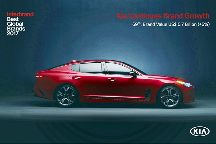 Menurut laporan Jenama Global Terbaik Interbrand 2017 yang dikeluarkan hari ini, nilai jenama Kia meningkat sebanyak enam peratus sepanjang 12 bulan lalu kepada AS 6.68 bilion.