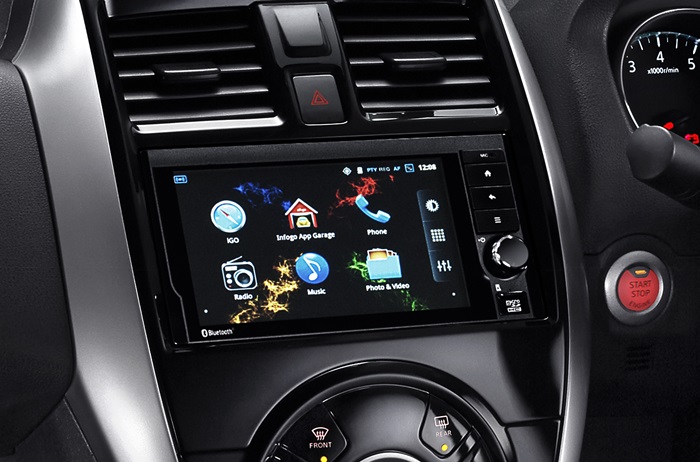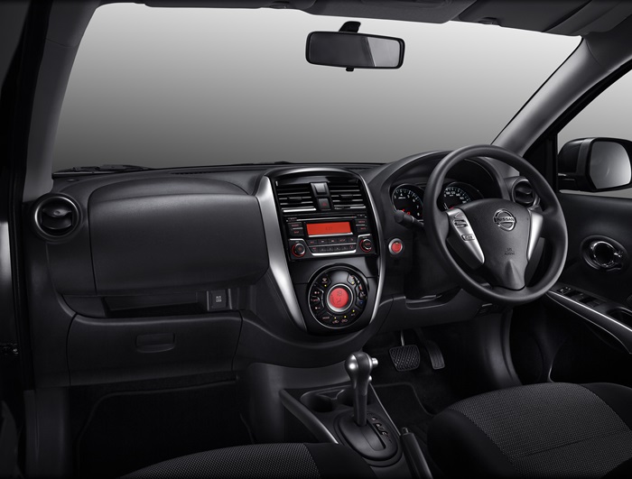 Almera ini didatangkan bersama stereng baharu yang dilengkapi butang kawalan audio, Fine Vision Meter dengan Paparan Multi Maklumat (MID) dan konsol tengah yang direka semula serta kemasan hitam piano yang premium.