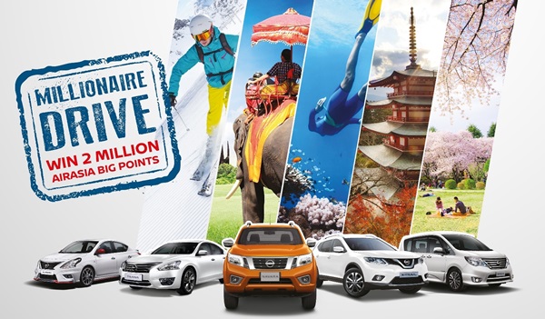 ETCM turut melancarkan Kempen “Millionaire Drive” sekali lagi. Sepanjang Oktober, pelanggan yang membeli dan mendaftar kereta Nissan mereka berpeluang memenangi sebahagian daripada 2,000,000 AirAsia BIG Points.