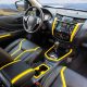 Pada bahagian dalaman, selingan warna burung kakaktua tersebut diteruskan pada papan pemuka dan konsol tengah berwarna Electric Yellow. Warna kuning tersebut turut dikenakan pada balutan kerusi dan riasannya.