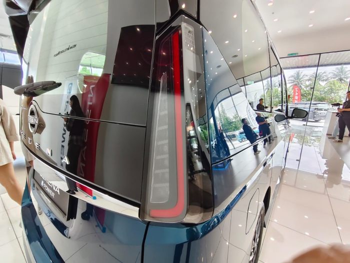 Di belakang, pintu but dua lapis kekal dikekalkan. Grafik lampu belakang menerima sentuhan baharu bersama tulisan “SERENA” dan lencana “e-POWER”.