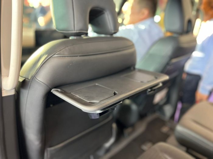 Bagi penumpang belakang, tersedia skrin hiburan bumbung bersaiz 14-inci yang sesuai untuk perjalanan jauh. Kemudahan lain termasuk brek parkir elektronik dengan fungsi auto-hold, stereng pelbagai fungsi untuk kawalan lebih praktikal, serta meja lipat khas untuk penumpang barisan kedua.