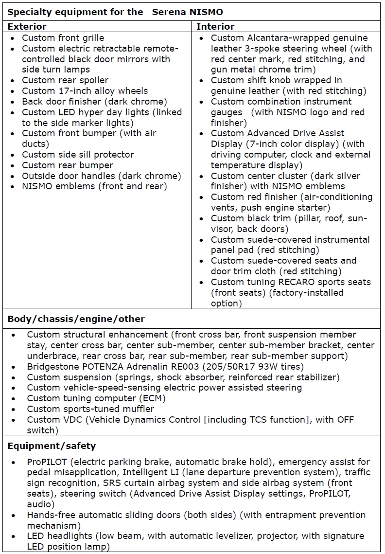 Home/NISSAN SERENA NISMO INI BOLEH DIPESAN DENGAN KERUSI RECARO & TAYAR POTENZA RE003/Nissan Serena NISMO Specification 2017 Nissan Serena NISMO Specification 2017