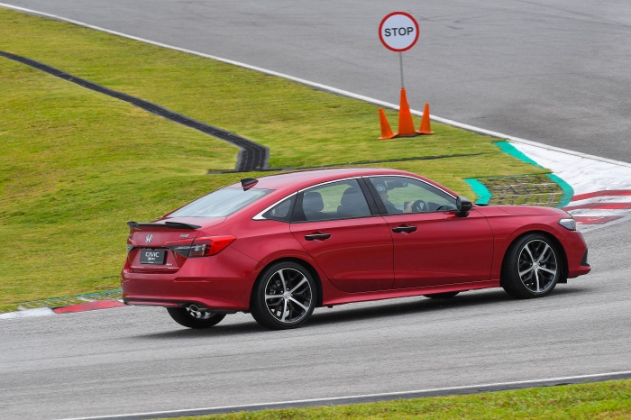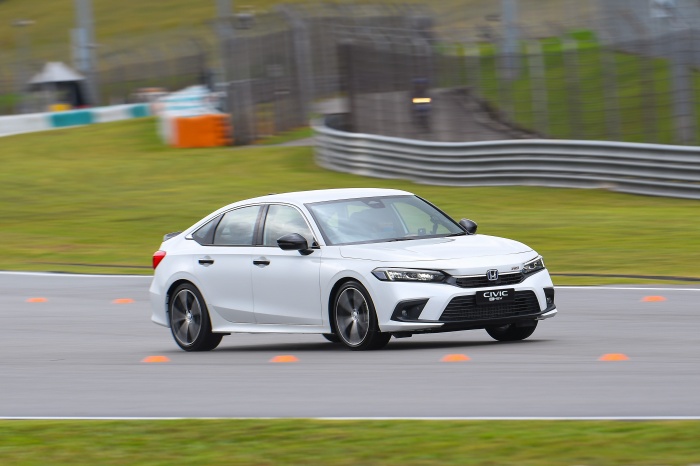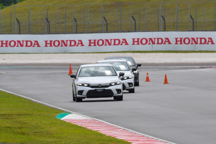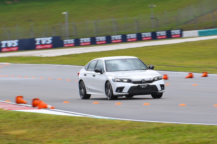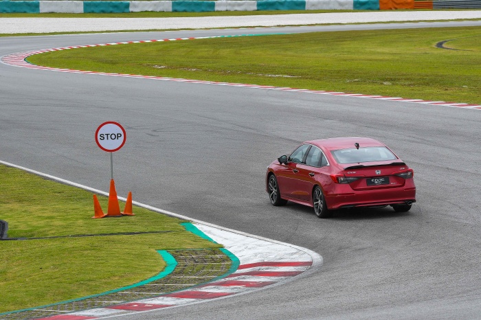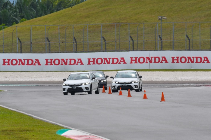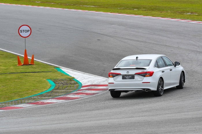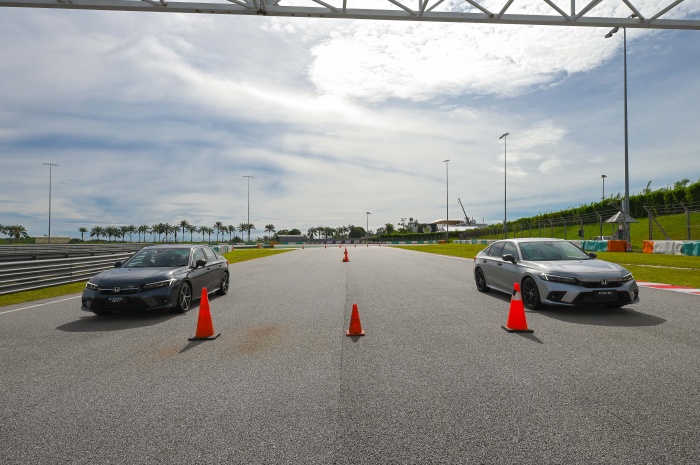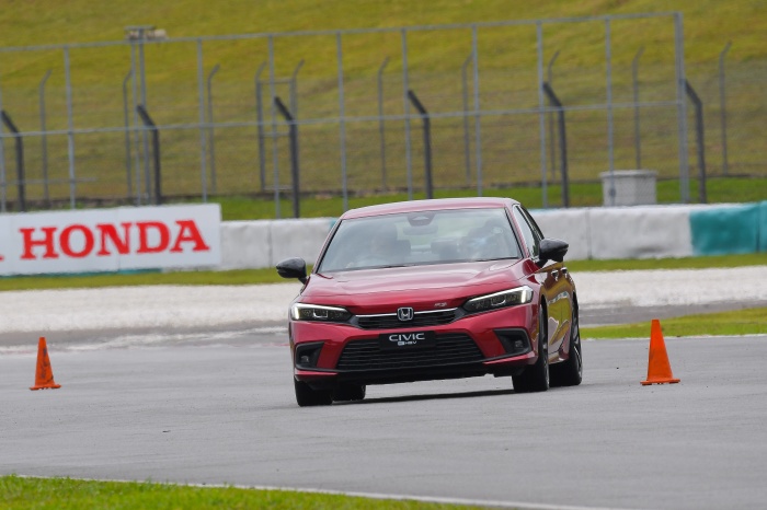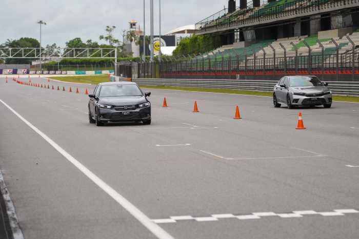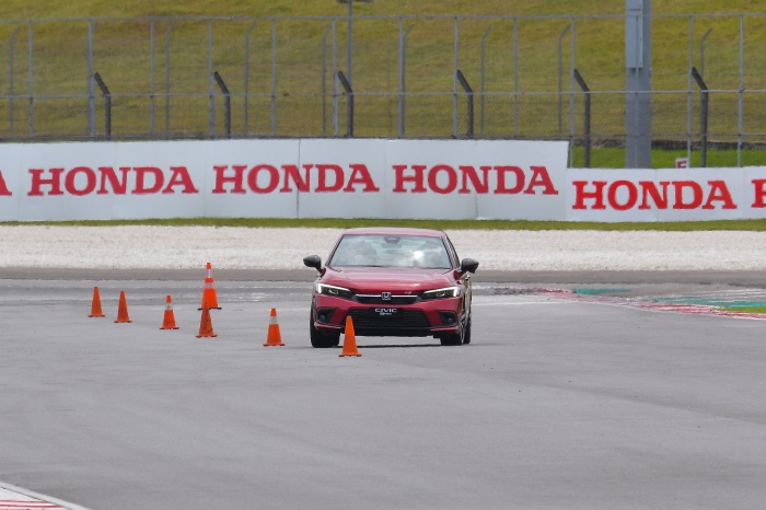 Selepas habis ujian drag, saya masuk ke South Track untuk menilai sendiri pengendalian model hibrid ini. Sebelum memasuki selekoh, kelincahan Civic e:HEV diuji di laluan slalom dengan jarak kon yang agak dekat.