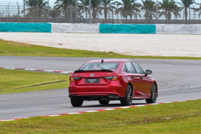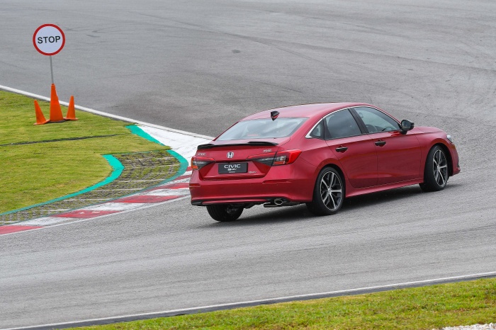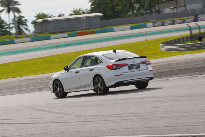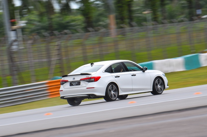 Ujian itu diteruskan dengan menyusuri separuh litar South Track yang memang terkenal dengan permukaan jalan yang terbaik. Jika dibandingkan dengan Civic 1.5 Turbo RS, suspensi belakang Civic e:HEV adalah lebih keras untuk menampung berat tambahan rangkaian sistem hibrid i-MMD.