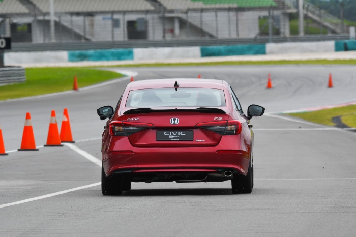 Harus tahu bahawa Civic eHEV adalah 100kg lebih berat berbanding Civic 1.5L Turbo. Terima kasih kepada pek bateri dan motor yang dipasang padanya. Biarpun begitu, sedan itu dapat mengelak kon dan mengubah haluan dengan begitu cemerlang.