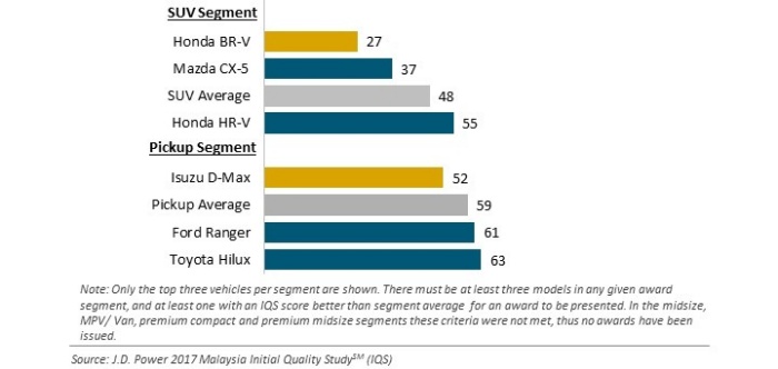 Itulah hasil Kaji Selidik Kualiti Awal (IQS) J.D. Power 2017 Malaysia yang dikeluarkan pada hari ini.