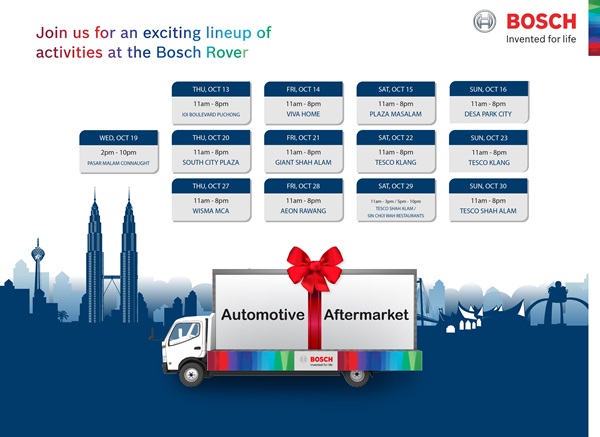 Sebagai sebahagian daripada kempen keselamatan kenderaan ‘Satu Alat Ganti yang Salah Boleh Merosakkan Segalanya’ dan sempena pelancaran pengelap Clear Advantage Bosch, Bosch Rover akan melakukan siri jelajah ke lebih 100 lokasi di Semenanjung Malaysia.