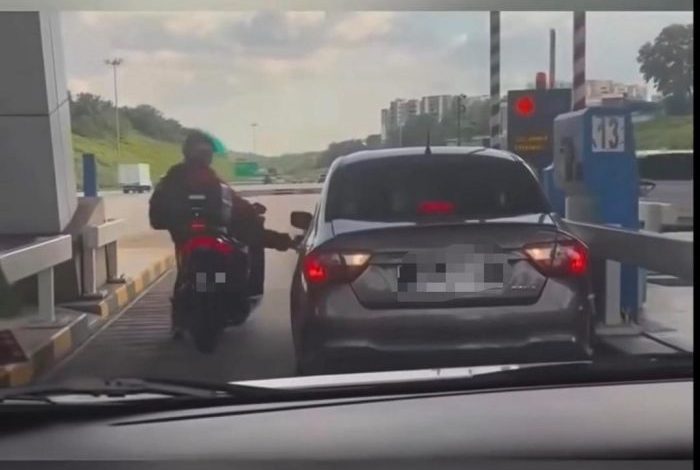 PENUNGGANG MOTOSIKAL TENDANG KERETA DI TOL LEKAS DITAHAN