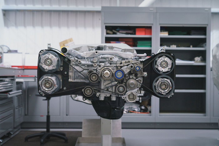 Ia menggunakan sistem ekzos Akrapovic penuh yang mengalun irama ‘merdu’ sebaik enjin EJ25 dihidupkan. EJ25 merupakan enjin siri EJ terakhir cuma untuk kereta ini ia telah di’overhaul’ sepenuhnya. Bahagian dalam dan sistem turbo serba baharu disatukan untuk menjana 440 hp kuasa maksima.