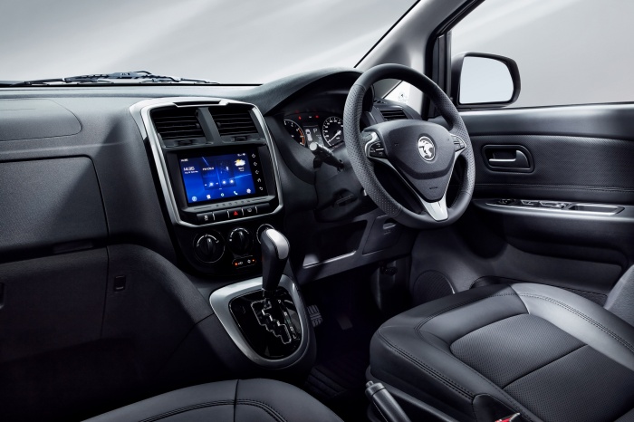Ruang kabin Exora dengan tujuh tempat duduk itu dibalut dengan kemasan kulit, stereng pelbagai fungsi dan tempat letak tangan pemandu dan penumpang hadapan memberikan sentuhan mewah dan selesa.