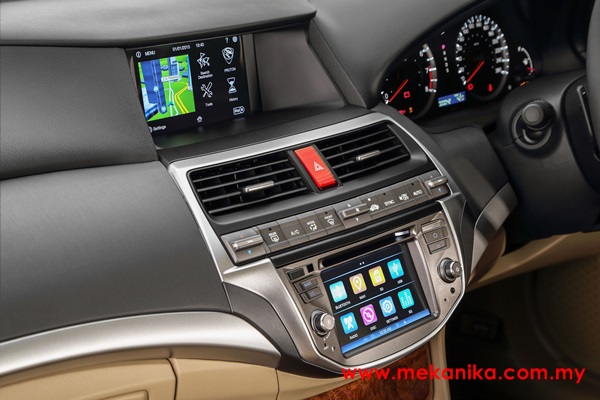 Terdapat dua skrin disediakan dengan skin di bawah corong pendingin hawa bertindak sebagai tempat anda mengawal fungsi audio, navigasi dan sebagainya.