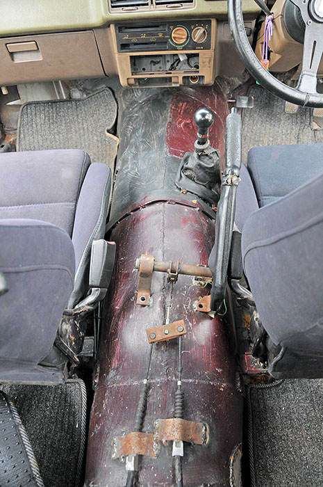 Beliau bermula dengan memotong bahagian tengah lantai kereta dan jugak lantai bonet belakang bagi memberi ruang untuk laluan prop shaft dan juga untuk gandar belakang. Lie membina sendiri transmission tunnel menggunakan kepingan besi dan jugak lantai bonet belakang menggunakan bahan yang sama.
