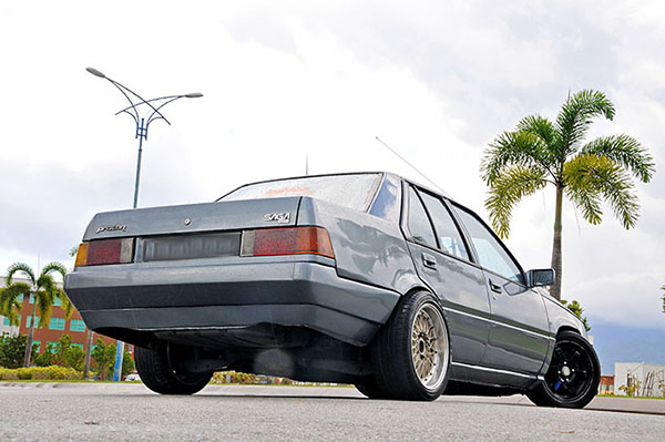 Ingat tadi pengubahsuaian pacuan belakang yang menggunakan gandar 1JZ? Sebenarnya, bukan semata-mata gandar yang digunakan, tetapi keseluruhan sistem gantungan dari Toyota Mark II disalin masuk ke cesi Saga ni. Ini bukan gila dah ni, ini ketua segala kegilaan yang pernah manusia fikirkan.
