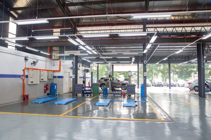 Melengkapkan bilik pameran adalah pusat servis canggih seluas 12,347 kaki persegi, dilengkapi dengan 10 ruang servis yang menampilkan teknologi terkini.