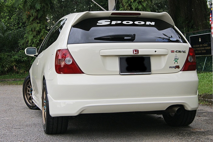 Badan kereta dalam keadaan asal EP3. Di Jepun tak banyak tuner yang buat bodykit untuk kereta ini. Kalau ada sekalipun, tak boleh blah rupa dia. Baik biar standard sahaja. Warna putih champion itu eksklusif untuk model R.
