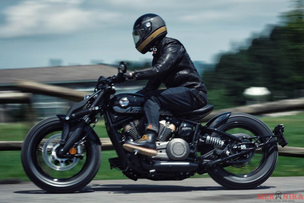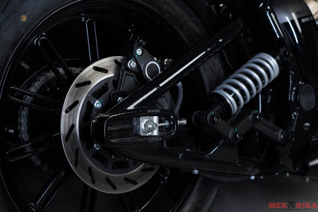Motosikal jenis bobber itu bukan sahaja tampil dengan reka bentuk yang mencuri tumpuan malah turut menawarkan sistem suspensi unik di bahagian depan.