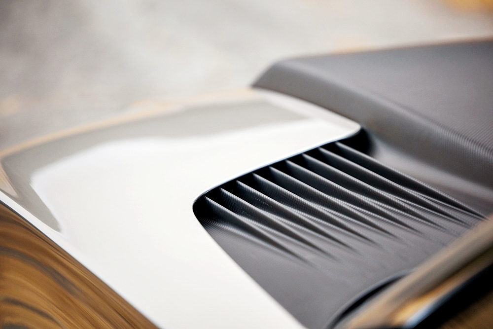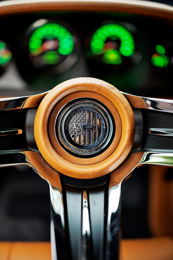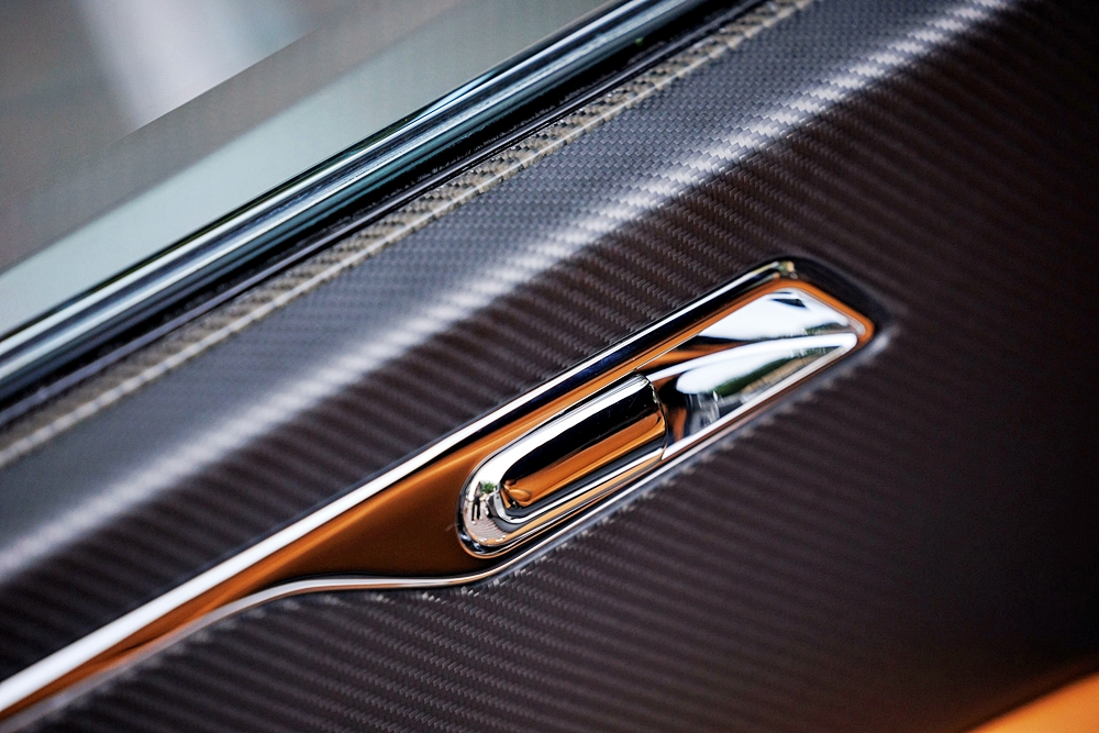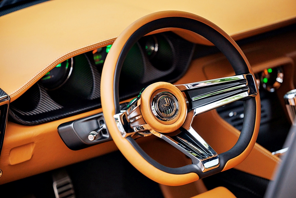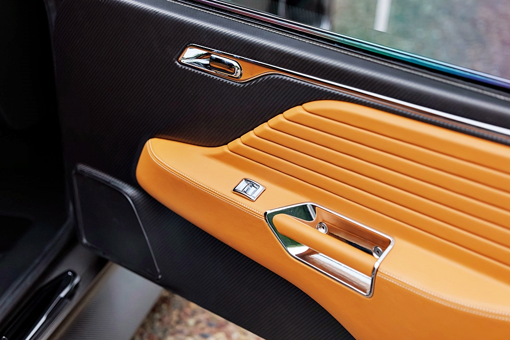 - Dalaman Mewah: Menampilkan papan pemuka gentian karbon, riasan keluli tahan karat cetakan 3D, pemegang pintu aloi tembaga dimesin, serta sentuhan kulit berlipat. Pemasangan dalaman dilakukan oleh Steve Pearson di Upholstery Unlimited.