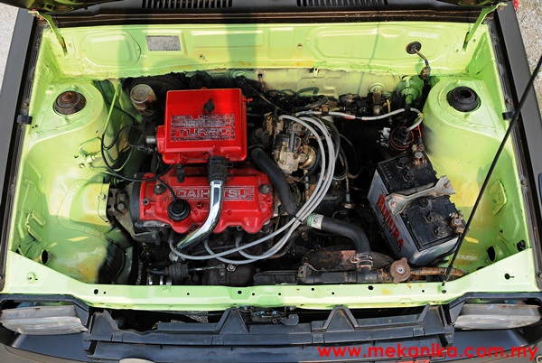 Badan asalnya yang memang dua pintu ini dipasang dengan enjin CB60 3 selinder turbo. Kuno? Ya. Enjin ini guna karburetor. Bila buka bay enjin teringat nostalgia masa lalu.