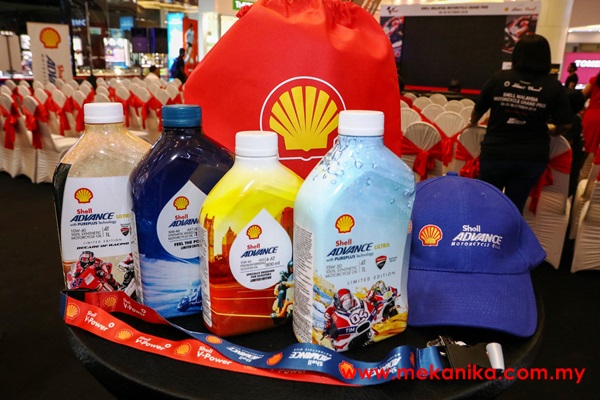 Minyak tersebut ialah Shell Advance Ultra dengan Teknologi PurePlus 10W-40 (1L) dan 15W-50 (1L), Shell Advance AX7 10W-40 (1L) dan Shell Advance AX5 Scooter 15W-40 (0.8L).
