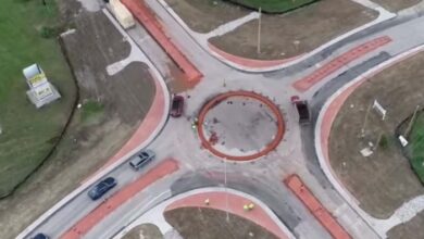 Melalui rakaman imej dari sisi dron, bulatan baharu siap dibina itu menunjukkan terdapat tiga bulatan menghubungkan beberapa jalan yang sama.