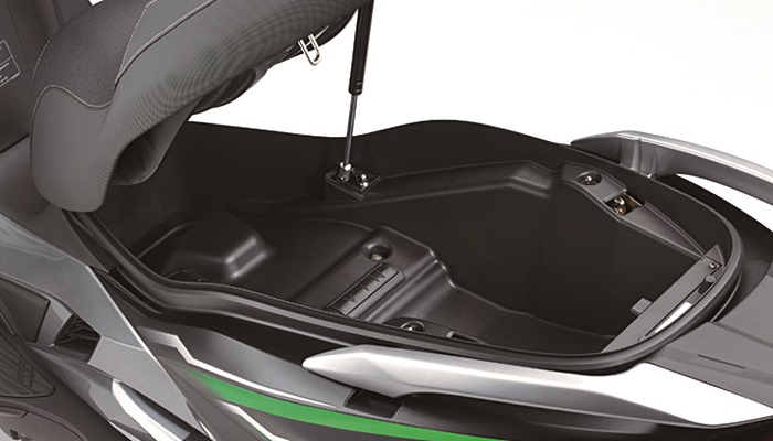 Ruang penyimpanan barang di bawah pelana dikatakan cukup luas. Ia mampu menempatkan topi keledar bersaiz penuh dan beg tangan saiz A4.