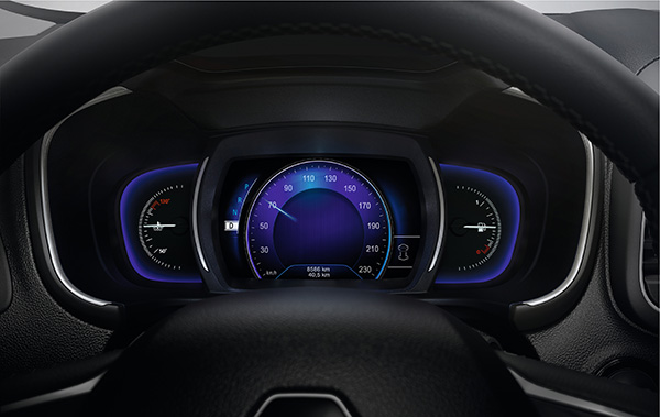 Data pemanduan, (kelajuan, RPM, penggunaan bahan api, dll) dipaparkan pada skrin warna bersaiz tujuh inci yang terletak di belakang stereng, selari dengan pandangan pemandu.