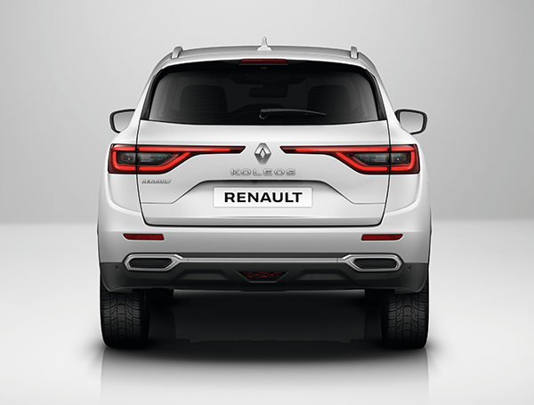 Pada bahagian belakang, gaya trademark Renault dapat dilihat dengan jelas. Lampu horizontal memberi impresi yang lebar dan membuatkan mata mahu melihat ke arah logo Renault yang terletak di tengah-tengah. Kemasan krom pada bahagian bawah bampar belakang menyerlahkan bentuk ekzos berkembar. Perincian ini menyempurnakan lagi reka bentuk luaran Koleos serba baharu secara keseluruhannya.