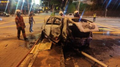 AXIA LANGGAR LAMPU MERAH TERBAKAR DIREMPUH BMW 320i DI SEREMBAN