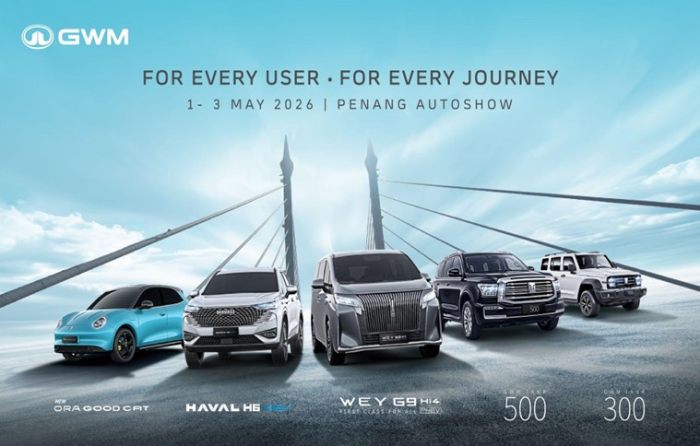 Penang Autoshow 2026 berlangsung dari 1 hingga 3 Mei di Penang Waterfront Convention Centre, menandakan penyertaan pertama GWM Malaysia di acara automotif berkenaan di wilayah Utara.