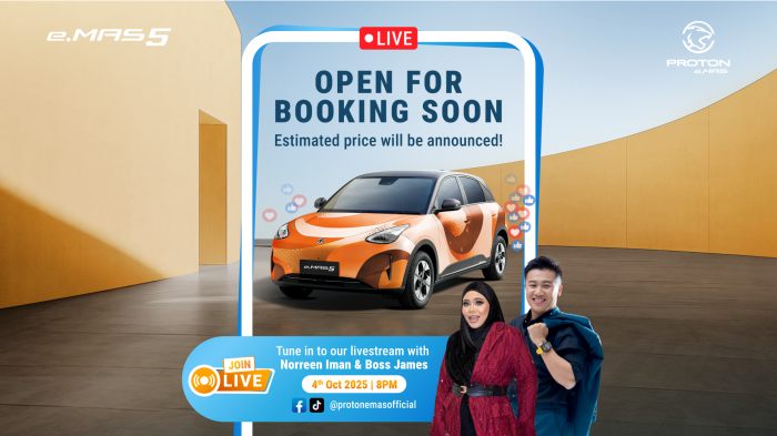 TEMPAHAN PROTON e.MAS 5 DIBUKA BERMULA 4 OKTOBER, UMUM ANGGARAN HARGA