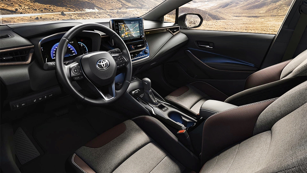 Pada bahagian dalaman, Corolla TREK dilengkapi skrin TFT berwarna tujuh inci, kemasan dua tona, riasan papan pemuka corak kayu dan logo TREK pada ambang pintu dan pintu kargo belakang.