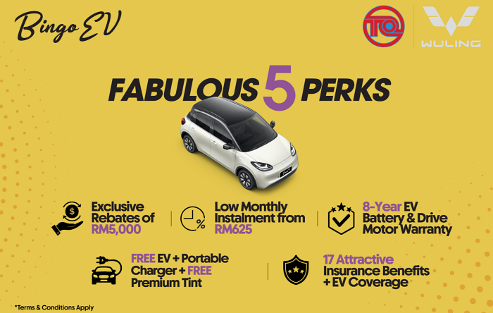 Pelanggan yang telah membuat tempahan dan menempah TQ WULING Bingo EV layak menikmati “Bingo’s Fabulous 5 Perks” yang bernilai lebih RM12,000 termasuk: