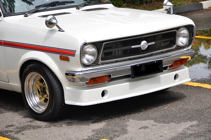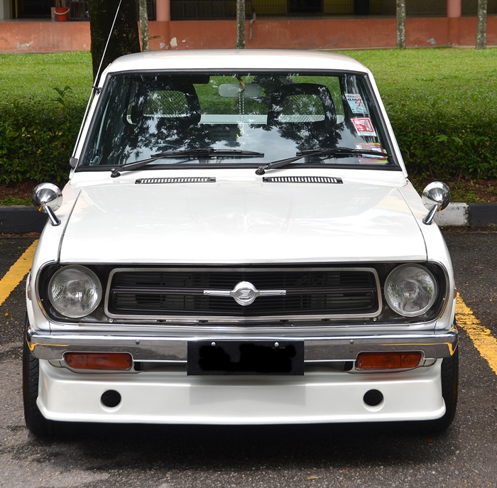 Aksesori asal JDM digunakan bagi menyolek luaran Datsun ini. Gril Datsun B110 GX-5 menggantikan gril asal. Sepasang cermin sisi jenis ‘tanduk’ digunakan bagi mengekalkan gaya kereta klasik Jepun dan sebuah lips depan custom turut dipadankan.