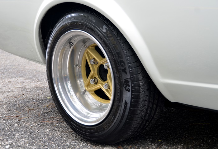 Tema retro diteruskan dengan pemilihan kombinasi rim dan tayar. Agak pelik dan memang tak kena langsung kalau kereta klasik macam ni pakai rim moden kan? Jadi pemilik Datsun ini memilih rim Enkei AP Racing berdiameter 13 inci dengan tayar Silverstone Synergy M3 bersaiz 185/60/13.