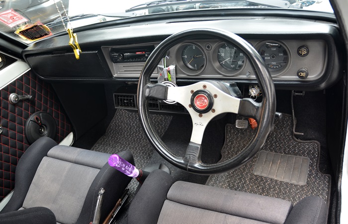 Pada bahagian dalam, sepasang tempat duduk Recaro jenis fishnet digunakan. Sementara kulit pintu mendapat balutan PVC baru yang dicorakkan dengan gaya klasik. Stereng asal diganti dengan stereng Momo. Karpet vinil asal diganti dengan karpet jenis fabrik.