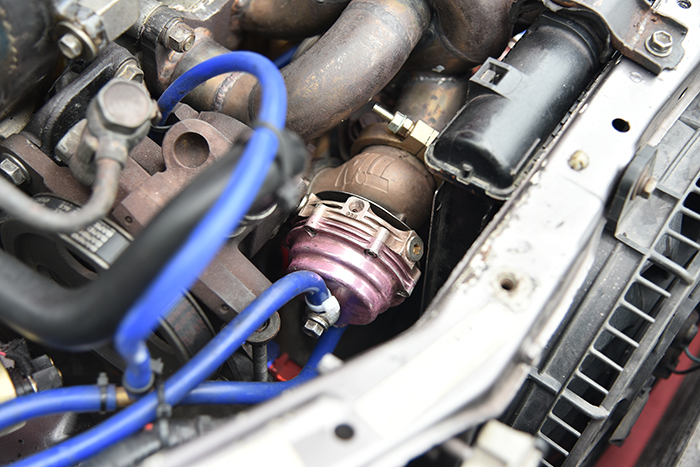 Tumpuan seterusnya melibatkan sistem pendesak. Tersemat pada manifold turbo itu adalah unit turbo TD04-09 kustom, yang diikat bersama wastegate Tial 38mm.