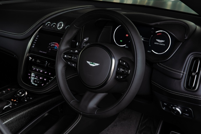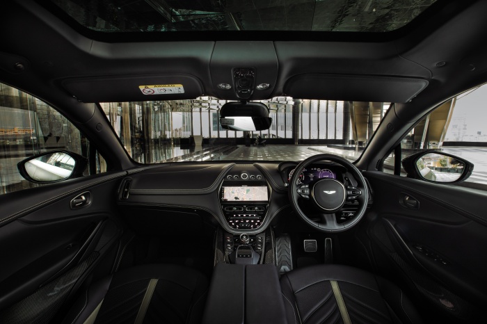 Masuk ke ruang kabin, DBX707 hadir dengan tempat duduk sports bersama 16 larasan dan ciri pemanas. Ia kini lebih banyak menggunakan material gentian karbon terutama pada konsol tengah.