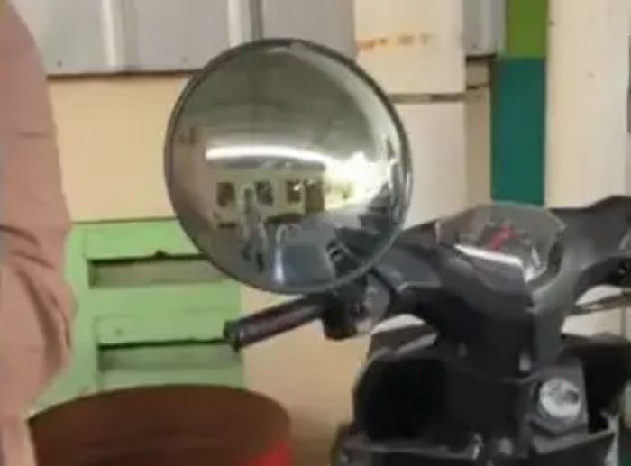 Melalui video berkenaan, secara jelas kita dapat melihat bahawa cermin sisi motosikal itu sangat besar dan cembung.