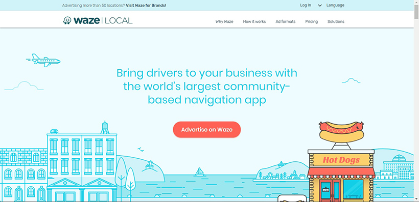 Sama seperti melihat papan iklan fizikal di jalan raya, iklan yang disasarkan di peta Waze memaklumkan para pemandu tentang perniagaan dan tawaran yang berdekatan. Iklan-iklan ini disatukan ke dalam peta dan pengalaman navigasi dengan cara yang relevan, dan membolehkan sasaran geografi dan pemilihan waktu trafik puncak untuk mencapai lebih ramai pelanggan.
