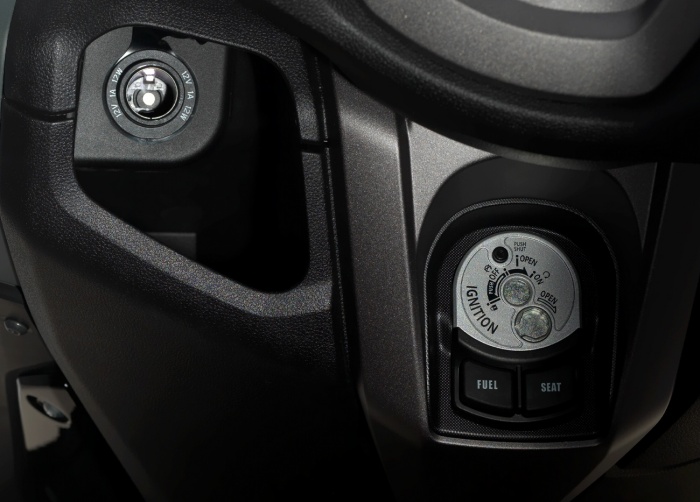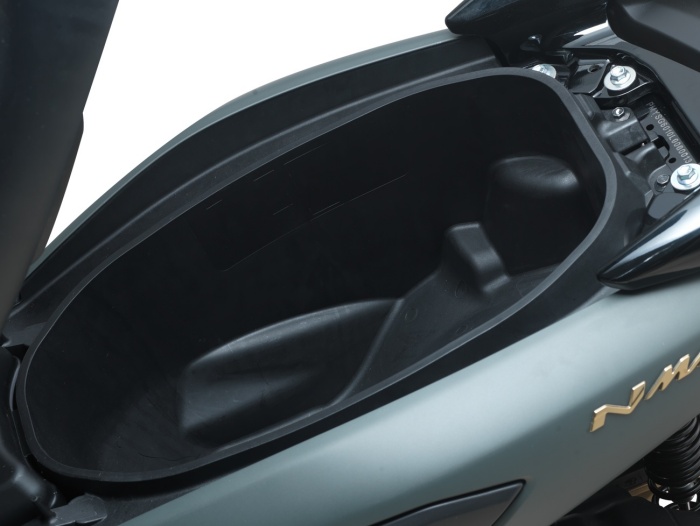 Ruang penyimpanan barang berkapasiti 23.3 liter boleh menempatkan sebuah topi keledar muka penuh. Dua cangkuk topi keledar juga ada disediakan.