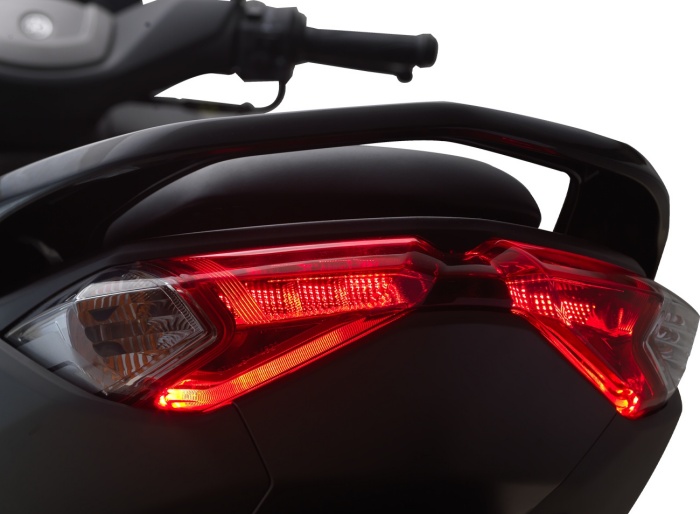 Bahagian belakang NMAX kini semakin menarik dengan penggunaan lampu LED empa jalur dengan efek 3D. Aspek keselamatan ditingkatkan lagu dengan sepasang lampu hazard.